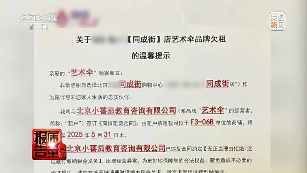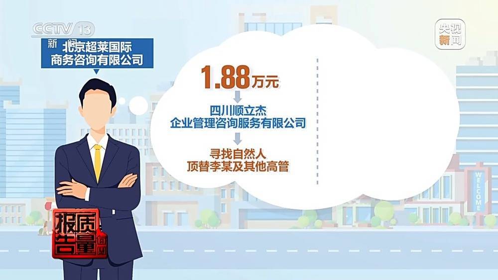 与此同时,被小蕃茄公司委托的超莱国际公司又以1.88万元的价格委托四川顺立杰企业管理咨询服务有限公司寻找合适的自然人,以顶替小蕃茄原法定代表人李某及其他高管,并花700元交由创企未来(北京)企业管理咨询有限公司办理具体跑腿业务。在三家公司的分工合作下,5月6日,北京艺术伞连锁培训机构全部闭店逃债。 北京市朝阳区市场监管局综合执法大队六分队负责人 刘磊:他们每个角色是不一样的,超莱国际的强项是解决客户投诉,以及能找到这些中介,四川顺立杰是能找到背债的自然人。 记者在对参与闭店的三家中介公司展开调查时发现,北京超莱国际、四川顺立杰和北京创企未来都是具有相关合法资质的咨询中介机构,他们明知当事人存在大量未消课时费,还依然协助小蕃茄公司寻找“背债人”,采用欺诈手段隐瞒重要事实取得公司登记,就是为了赚取高额的中介费用。