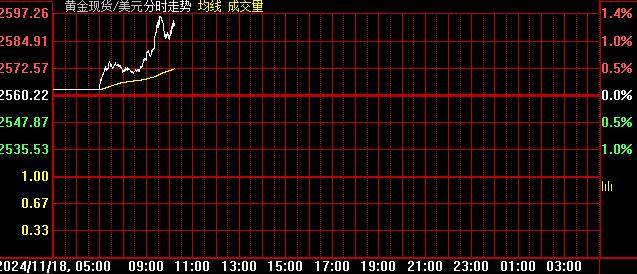 “特朗普获胜后,一个关键的影响是我们可能会看到对加密货币的监管减少,”Invesco Advisers的首席全球市场策略师Kristina Hooper表示,“这至少会使一些资本远离黄金;投机性需求很可能会转向加密货币。” 长期仍看好 当然,随着黄金价格目前已经从历史高位回落了逾200美元,许多贵金属投资者眼下其实也在思考一个问题:本轮黄金的跌势究竟何时休?眼下又是否已经接近了一个重新买入的机会窗口? 周一亚市早盘,在整体亚太股市和上周五美股表现不佳的背景下,金价便出现了逾1%的反弹行情,现货黄金价格重新接近了2600美元关口。这也令不少黄金多头“蠢蠢欲动”。