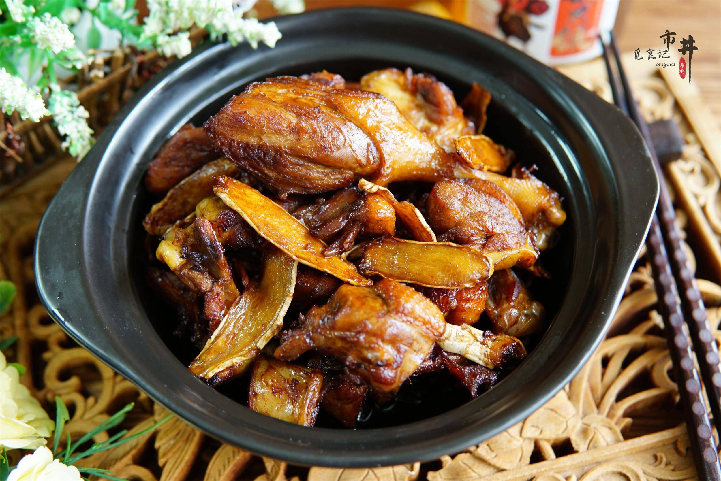 5、盖上砂锅盖子,慢煲四十分钟,每五分钟给鸭肉翻个面,煲至汤汁快烧干,只余一些底油即可出锅。