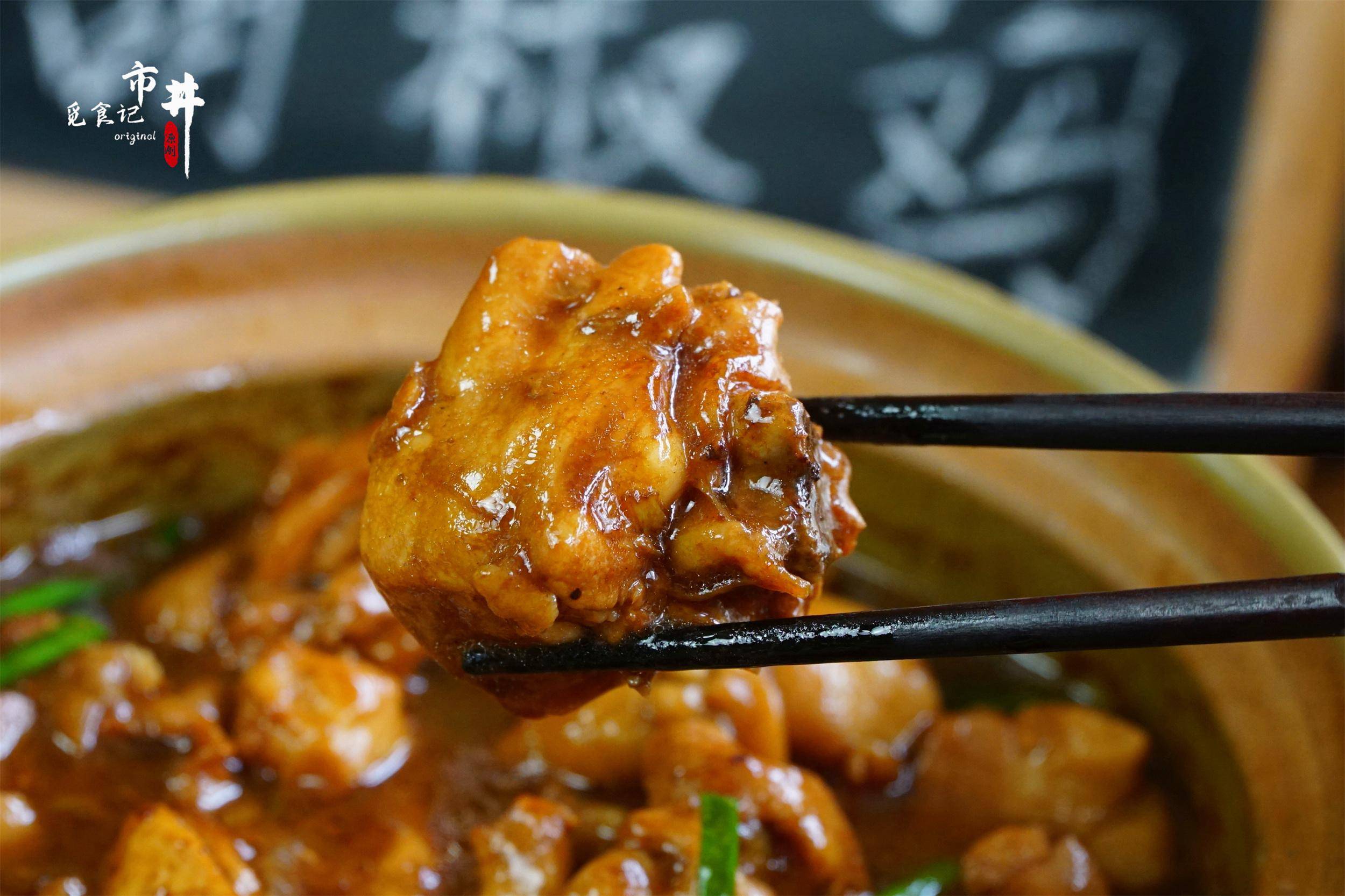 5、焖好后,淋上一圈老抽上色,翻炒均匀后,撒上小葱段即可关火,鲜辣嫩滑的砂锅胡椒鸡就做好了。